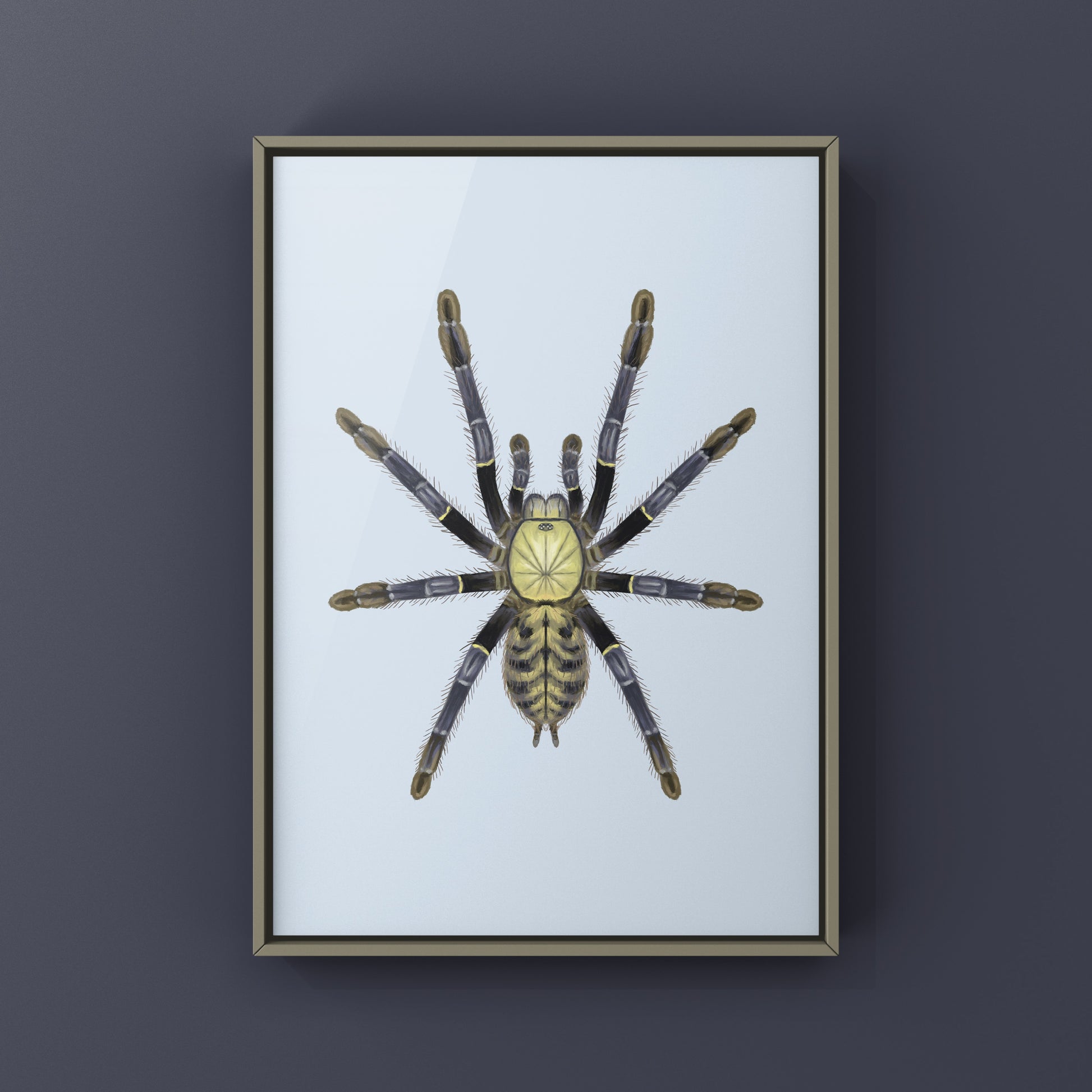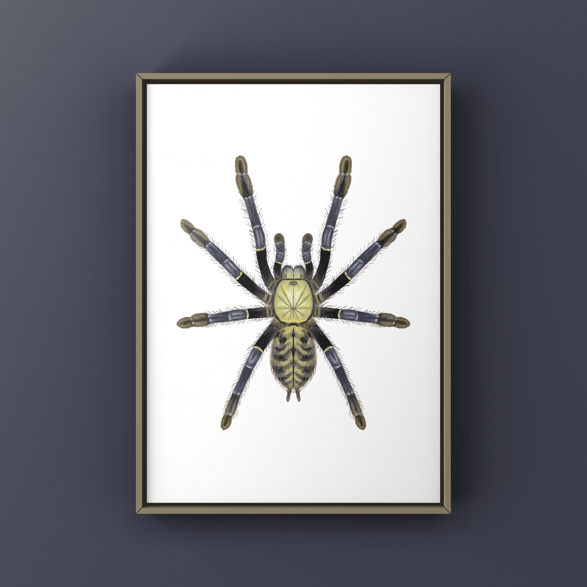 The textless style offers a minimalist artistic style that transforms the natural existence of these wonderful species into decorative art. This style highlights the beauty of the Theraphosidae family without the technical side associated with the classifications.
