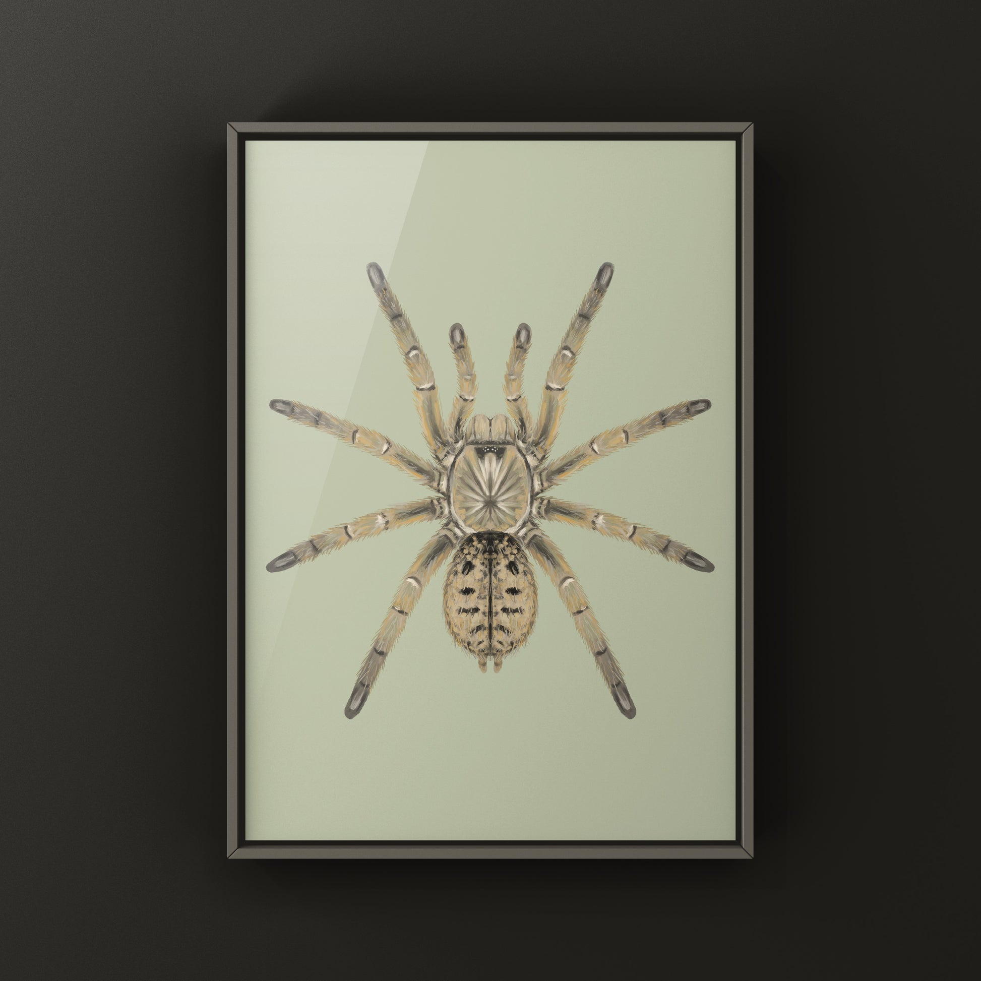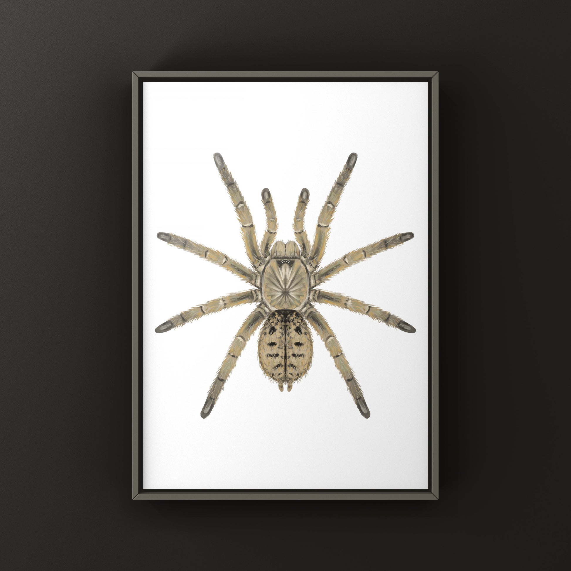 The textless style offers a minimalist artistic style that transforms the natural existence of these wonderful species into decorative art. This style highlights the beauty of the Theraphosidae family without the technical side associated with the classifications.